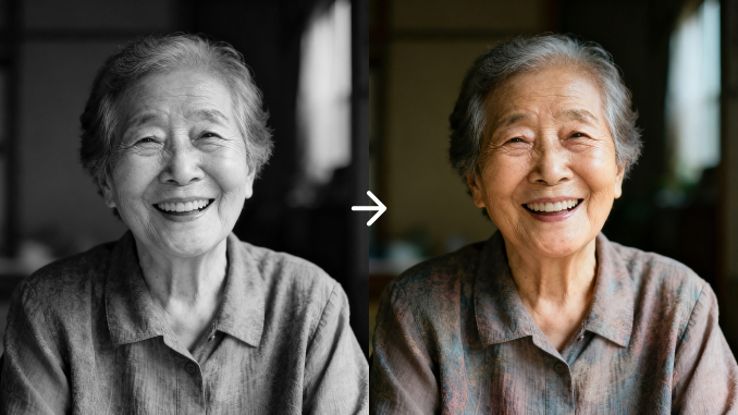 - 오래된 흑백 사진을 AI가 가장 자연스러운 컬러로 되살립니다.